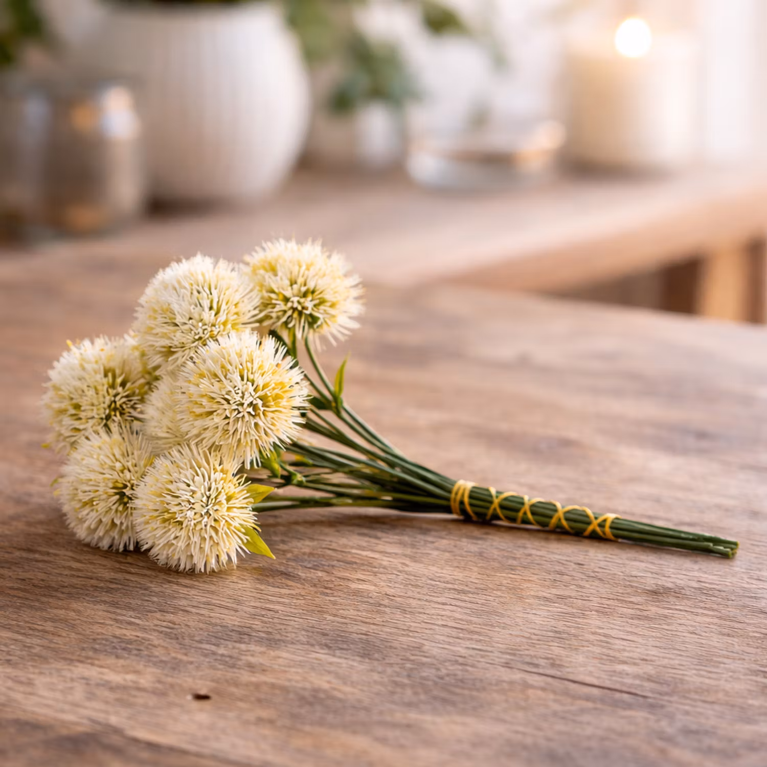 Blommorna är ett smidigt alternativ till färska växter och behåller sitt utseende över tid utan behov av vattning eller skötsel. Perfekta för dig som vill skapa en mjuk och tidlös känsla i rummet.